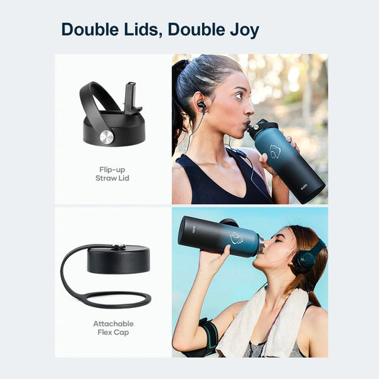 40 Oz Insulated Stainless Steel Water Bottle with Straw Lid and Flex Cap, Double Wall Vacuum Flask for Outdoor Sports and Travel