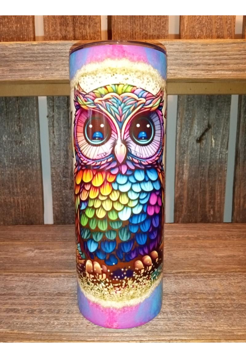 Rainbow Flower Owl 20oz Skinny Tumbler – Perfect for Your Favorite Drinks!